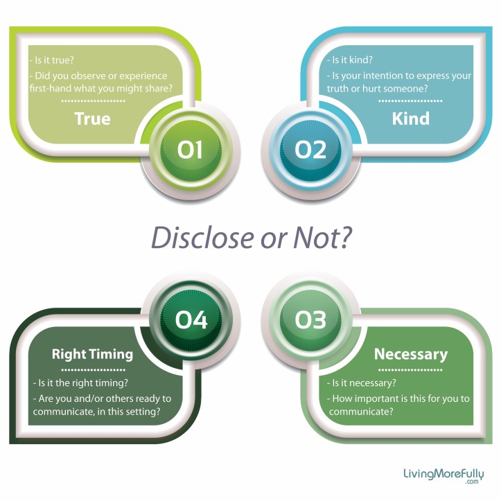 When I am honest, I consider if what I am about to say is kind, necessary, timely and appropriate.