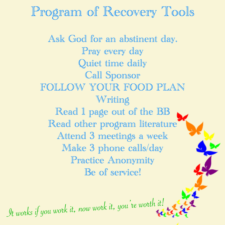 The tools are very important to help maintain abstinence. This is what my very first sponsor told me to do when I first started program.
