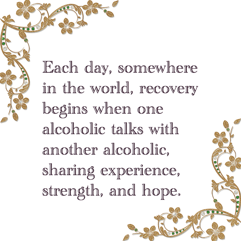 Next week, we will read from the stories in the AA Big Book, and then discussed them together.