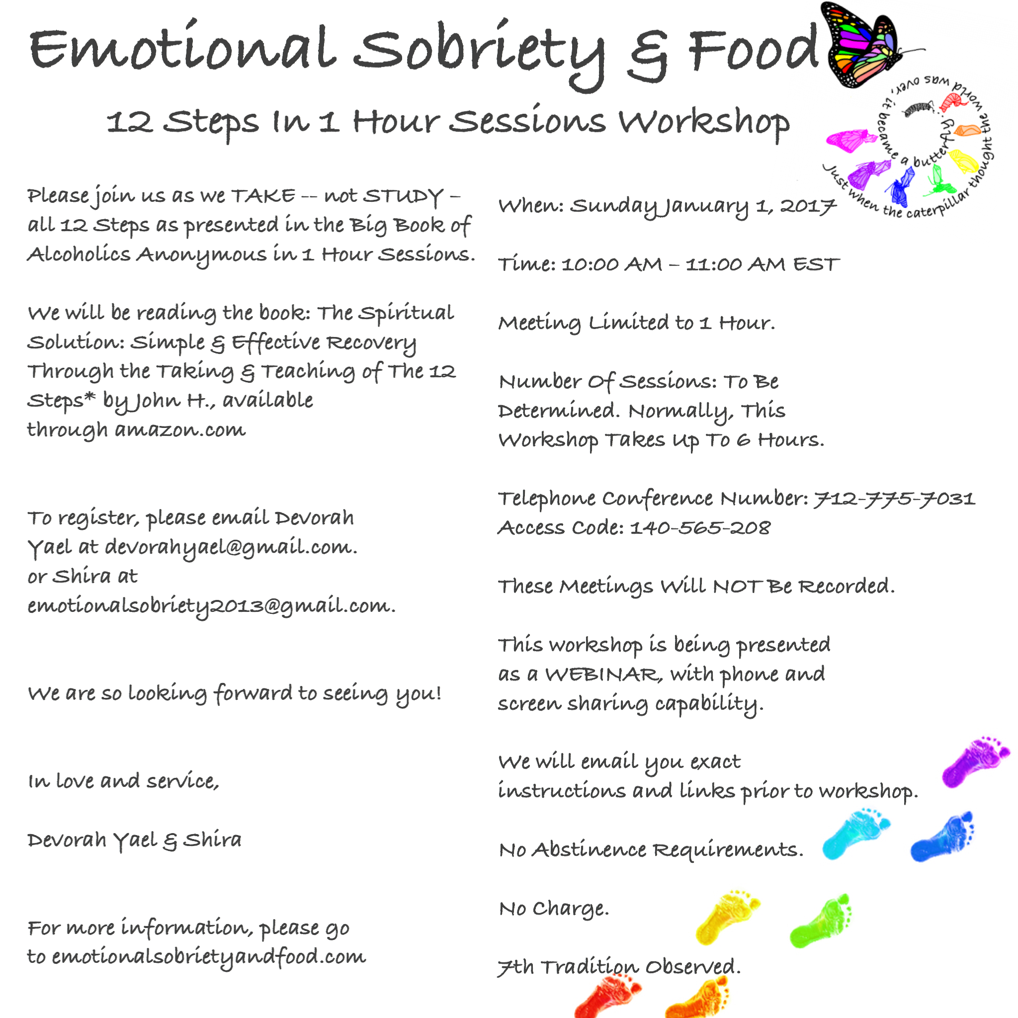 Emotional Sobriety and Food 12 Steps in 1 Hour Sessions Workshop