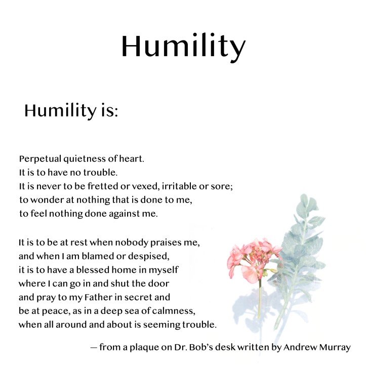 God, I humbly ask You to remove my shortcomings of self-seeking, pride, and self-aggrandizement and replace them with humility, hospitality, and selflessness. May I be willing to give freely from my heart — from a place of love, generosity and care for others.  Please grant me the clarity to understand that my real purpose in learning to live by the spiritual principles of this program is to fit myself to be of maximum service to You and the people You place in my life. I do not need the validation from others to justify my self-worth. My worth is dependent on You and doing as You would have me BE. May I do Thy will always!